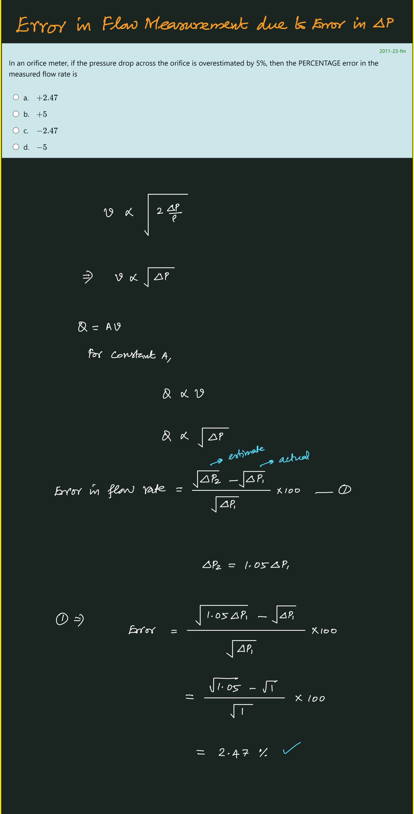 4. Error in Flow Measurement due to Error in Pressure Measurement