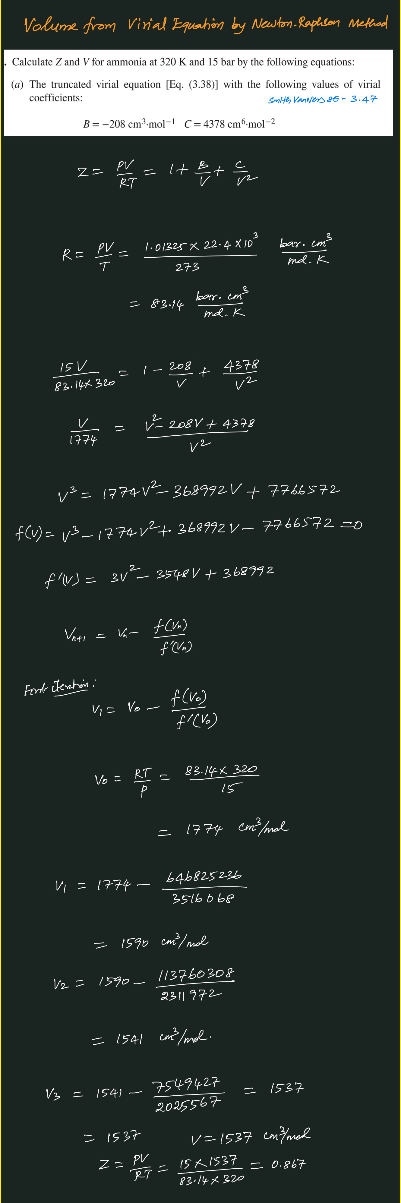Volume from Virial Equation - Newton-Raphson Method