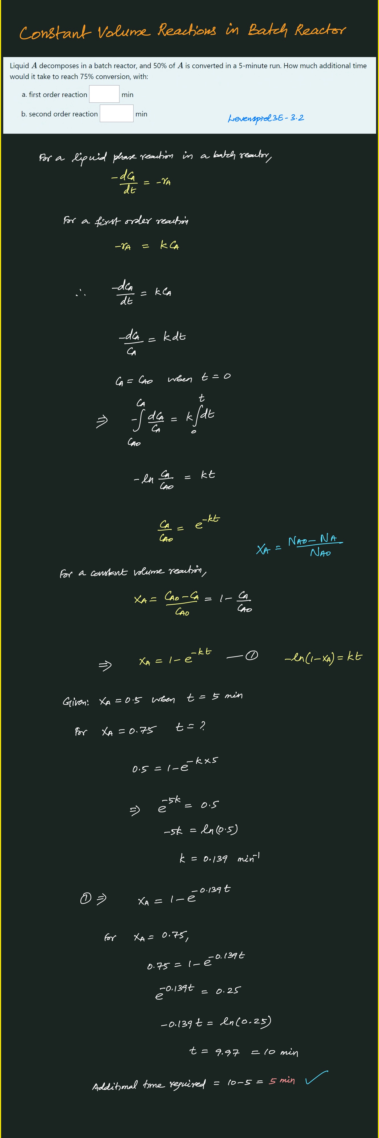 Constant Volume Reactions in Batch Reactor
