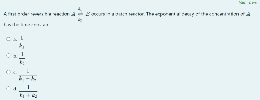 Time Constant of First Order Reversible Reaction