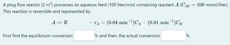 Reversible First Order Reaction in PFR