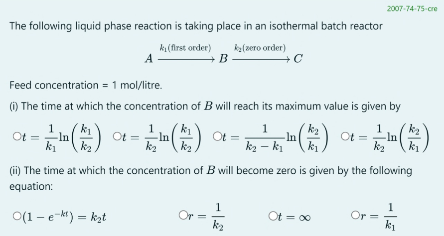 Series Reactions in Batch Reactor - First Order followed by Zeroth Order