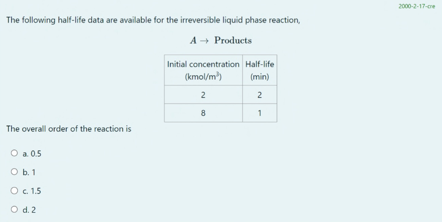 Order of Reaction from Half-life Data
