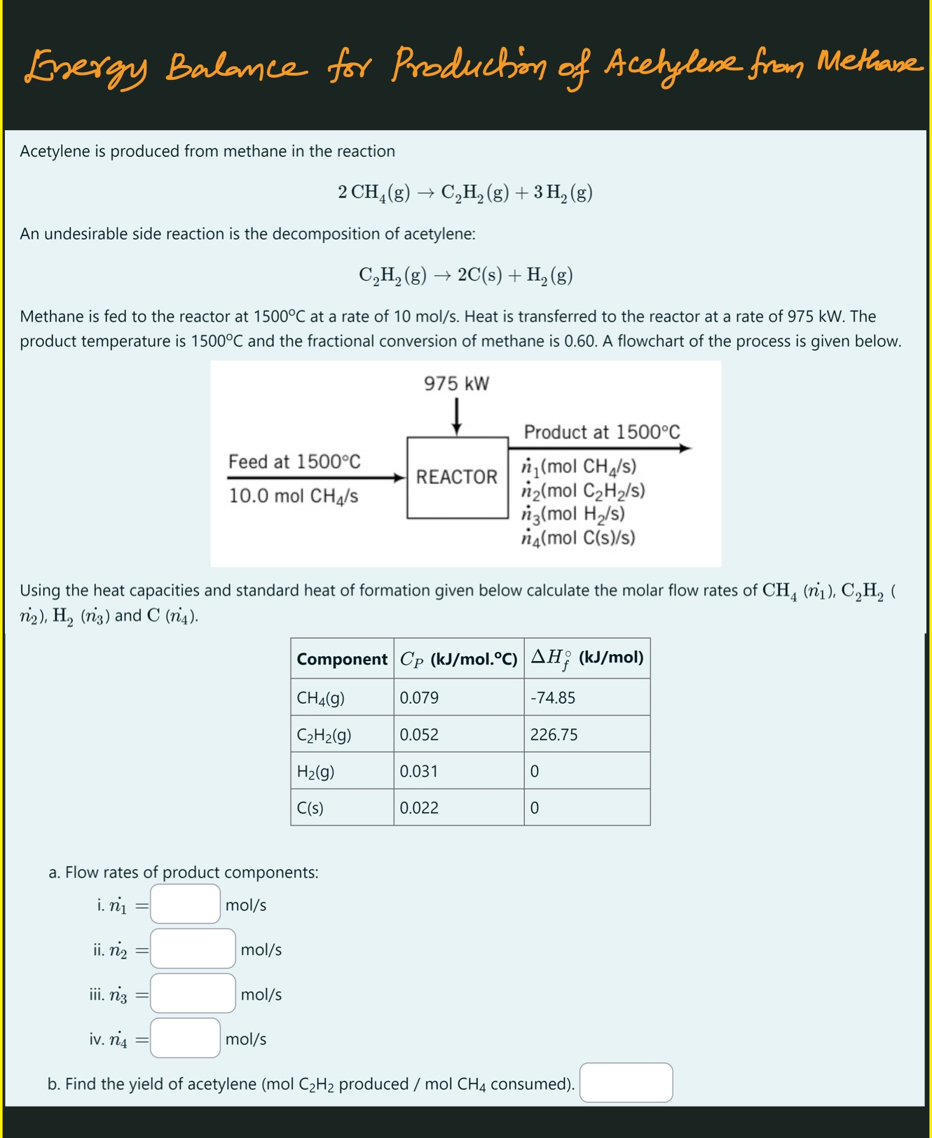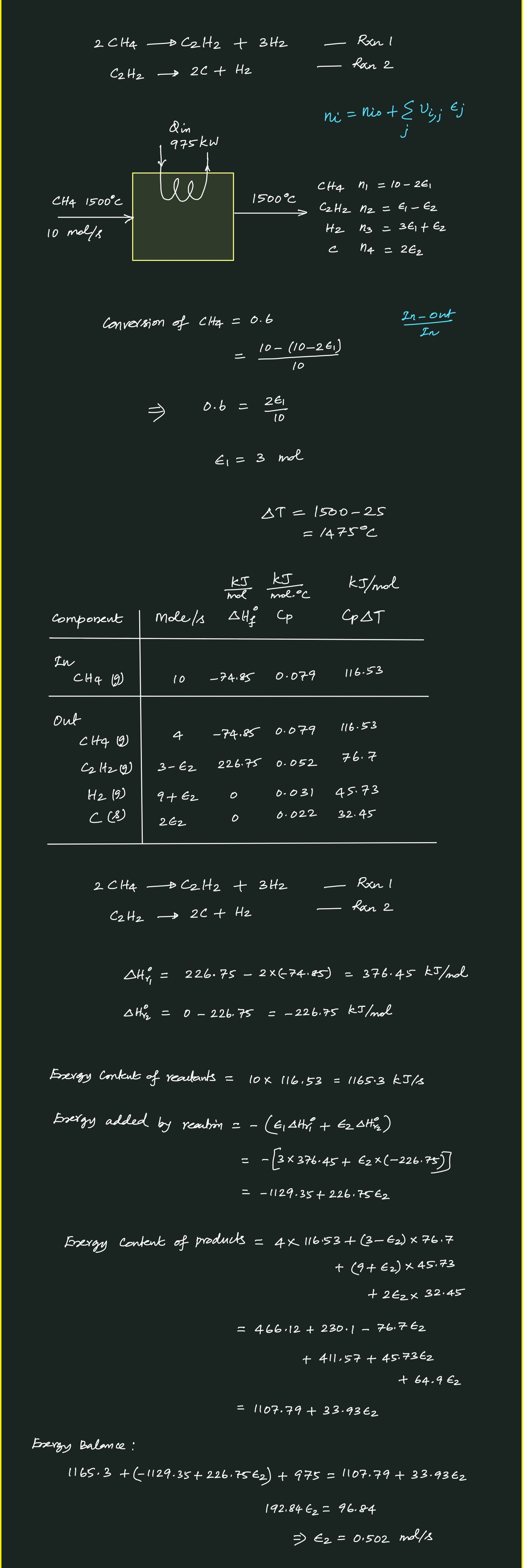 Energy Balance for Production of Acetylene from Methane
