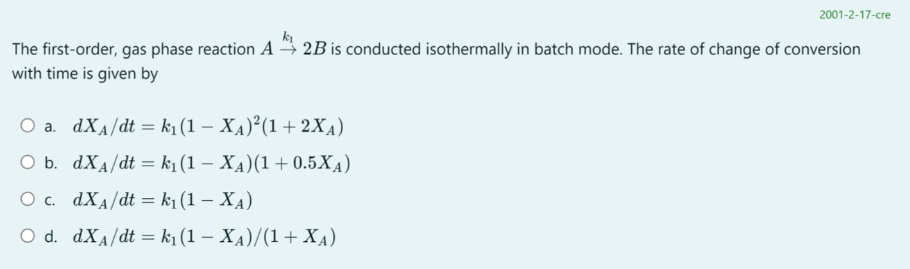 Relation for Conversion of Gas-phase Reaction in Batch Reactor