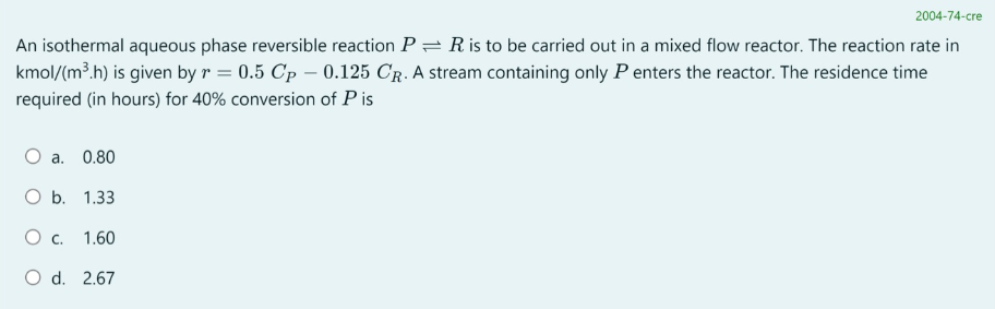 Reversible Reaction in MFR