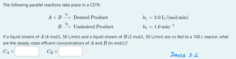 Parallel BiMolecular Reactions in CSTR - First and Second Order Reactions