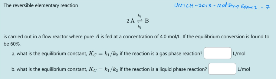 Equilibrium Constant of Gaseous / Liquid Phase Reaction